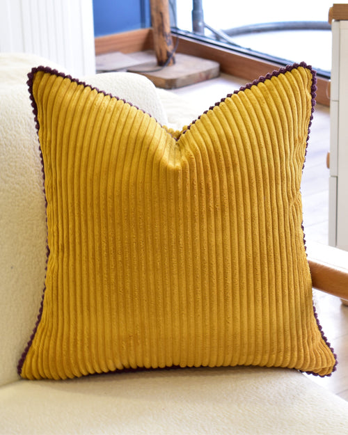 Mor Biyeli Hardal Fitilli Kadife Kırlent Kılıfı